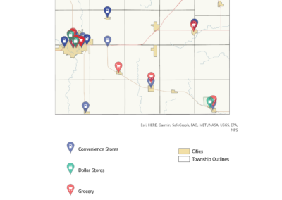 Here are ways we used mapping in the Mower County Community Assessment Report to help identify opportunities and gaps and help tell a story: